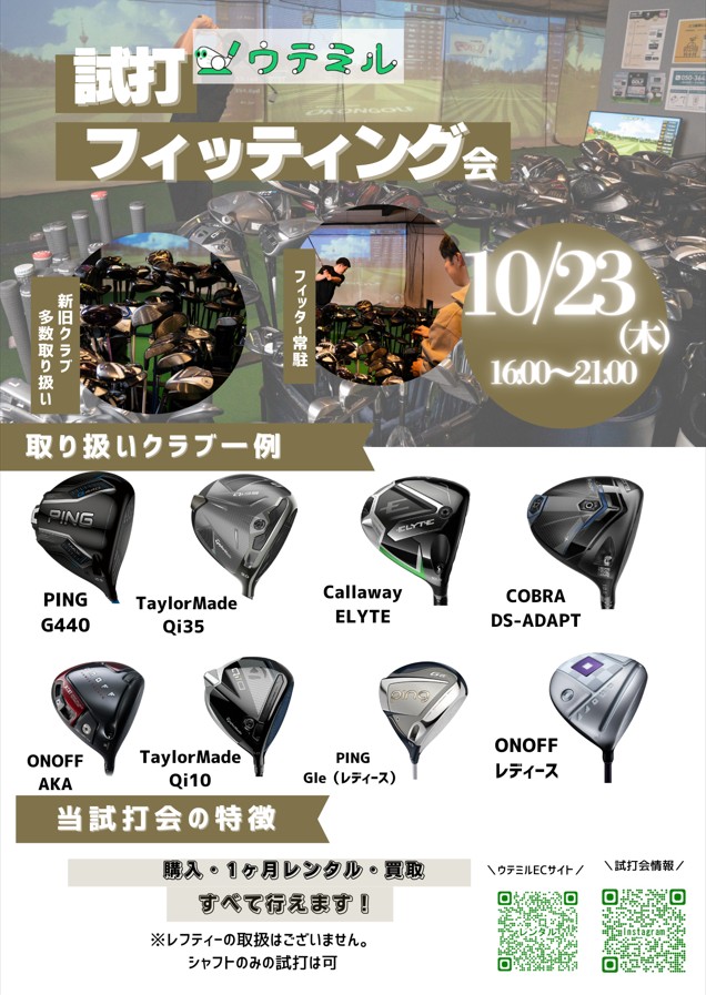 お知らせ 2025.10.13 クラブ試打会を実施します! ウテミル様ご協力のもと、10月23日(木)にSWING24/7 希望ヶ丘店舗にてクラブ試打会を実施します。(時間:16:00~21:00まで) ご参加ご希望者はSWING24/7 希望ヶ丘 公式LINEへご連絡お願いします! ※参加可能人数に到達した時点で募集を終了します。